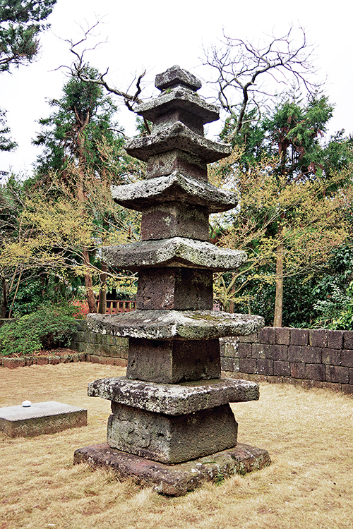 불탑사 오층석탑. 제주의 특성을 잘 살린 국내 유일의 현무암 불탑이다.